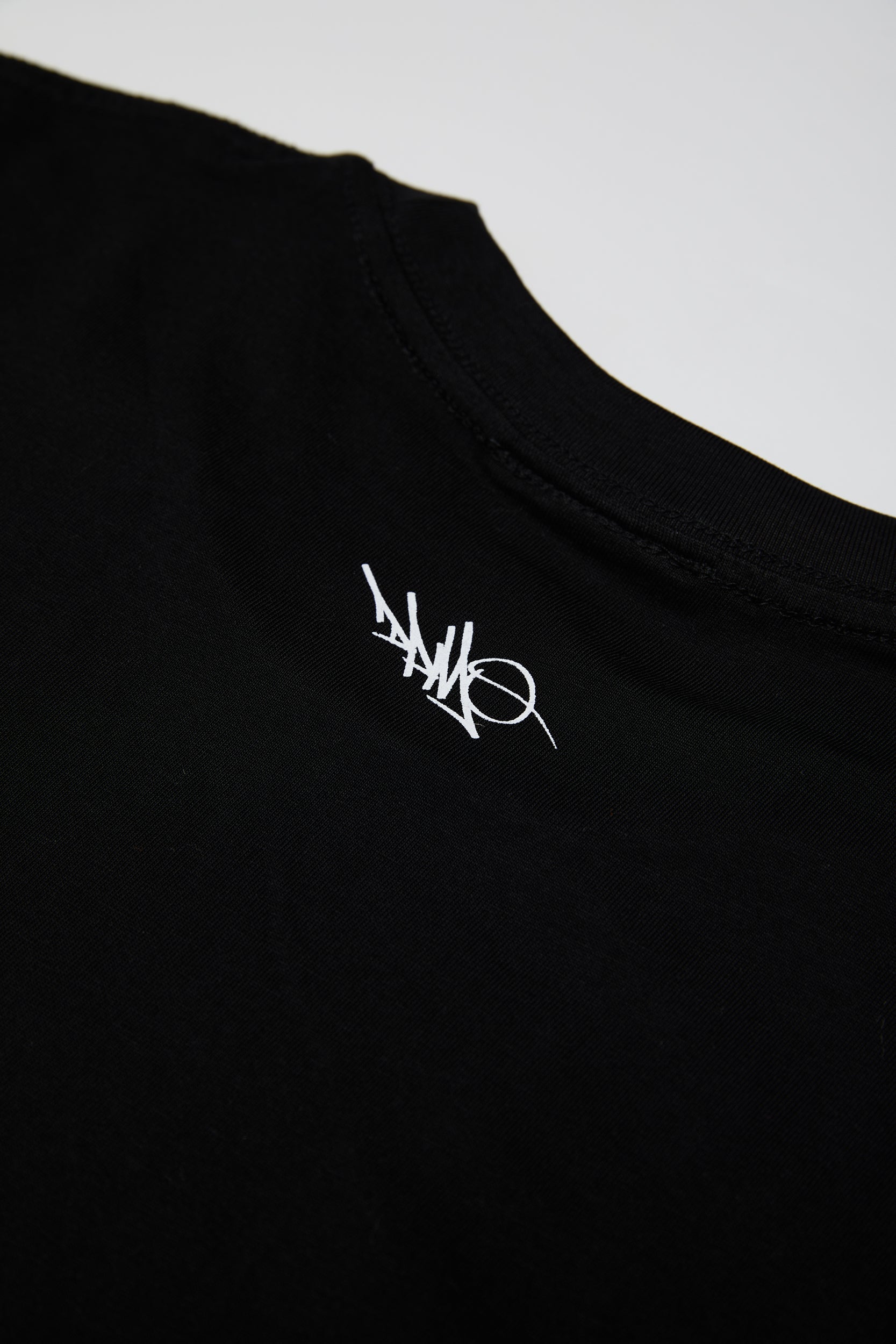 • 'DPMO' logo screen printed top of neck.